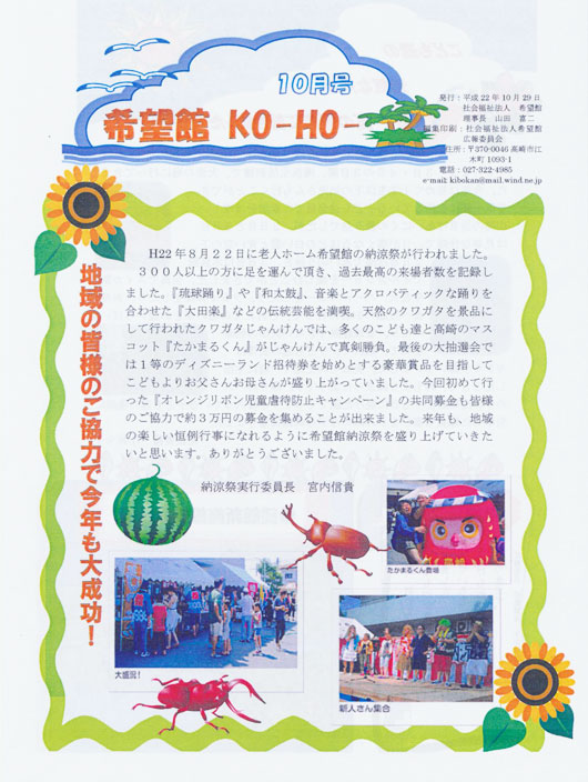 こちらは希望館で行われた行事や、今希望館で取り組んでいる事、力を入れていることを紹介しています。皆様の目に少しでもとまれば幸いです。希望館をより知っていただくために希望館 KO-HOをお役立てください。