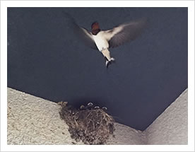 毎年ツバメが玄関先に巣を作ってくれます。朝の来館時、玄関にて「ツバメ大きくなったかね?」と上を見上げ、ツバメの成長を確認するのがご利用者の楽しみとなっています。ヒナが5羽いて、元気いっぱいです。日に日に大きくなるお土産をお掃除するのも成長の喜びです(笑)