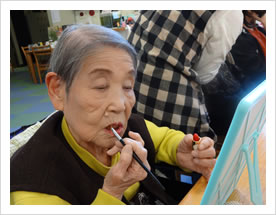 メイクもみなさん鏡に映ったご自身をみてうっとり。また暖かくなったら明るい色のメイクアップレッスンができたらいいですね!最後に希望館デイサービスの辻田さん、ご協力ありがとうございました!