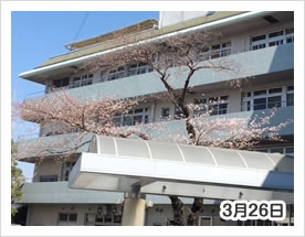 3月26日、希望館の桜も3分咲き位になりました。先週末はまだまだつぼみだったに週末からの暖かさで一気につぼみが花開きました。翌日の3月27日には6分咲き?位までつぼみが開き、希望館の桜も見頃を迎えています。