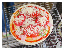 5月14日、段ボールで作ったピザ窯でピザを焼きました。