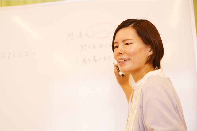 ユニットや施設内のことだけでなく、家庭や行政、学校などの関係機関と連携を図り、常に広い視野を持ち、保育スタッフを後方から支える仕事です。