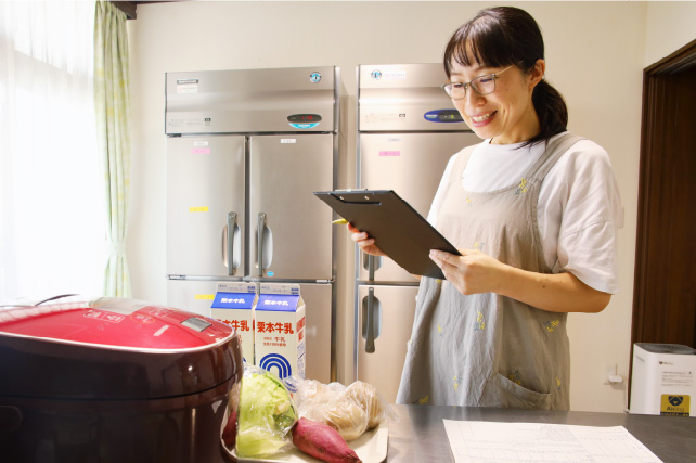 育ち盛りの子どもの成長を考えたメニュー作りのほか、“食”への興味関心を育むための働きかけを行い、子ども達が食を通じて心豊かな生活を送るための手助けをする仕事です。