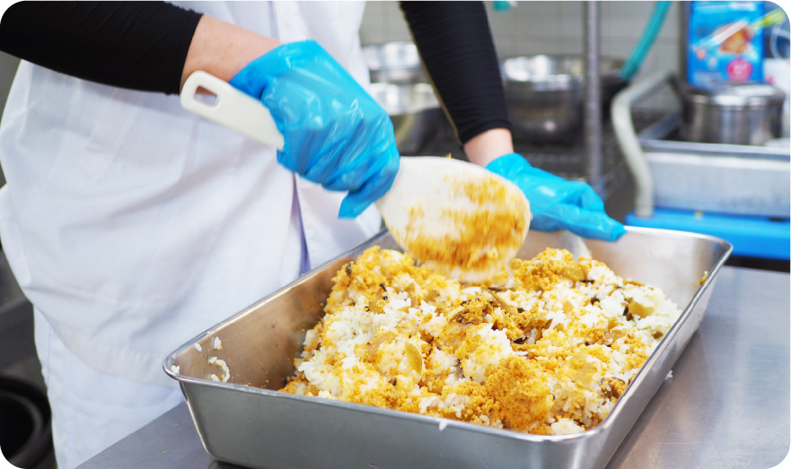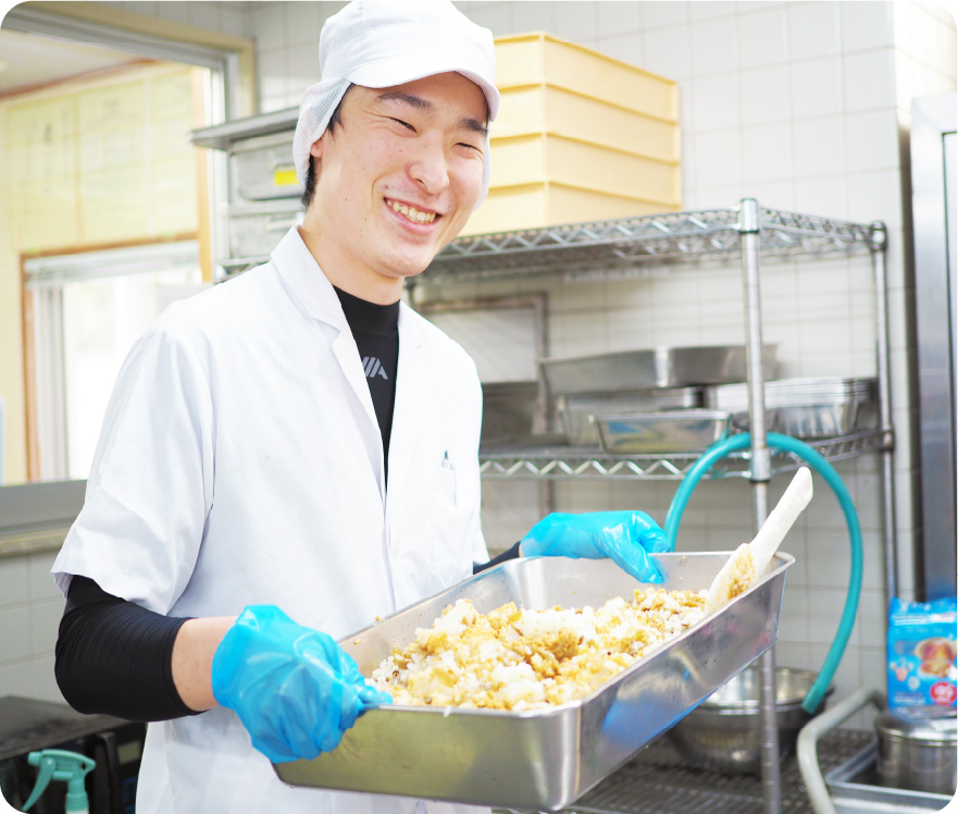 調理課には、わからないことがあれば詳しく丁寧に教えてくれる同僚がいますし、有給休暇などの取得率も高く、自然にサポートし合える同僚がいるので安心して働けています。