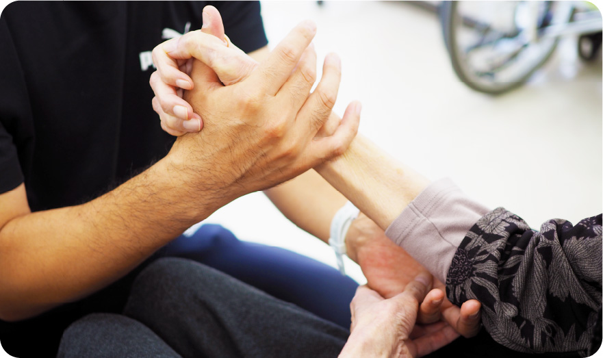特別養護老人ホームと養護老人ホームで、機能訓練を担当しています。利用者様ができるだけ自分らしい日常生活が送れるように、体のそれぞれの機能の状態やご希望に合わせて、移動のための訓練などを行います。寮母とも日々の利用者様の状態を確認しながら、機能訓練に向けた書類を作成・管理することも仕事のひとつです。毎日の訓練では「ありがとう」と感謝いただけることがやりがいになっています。