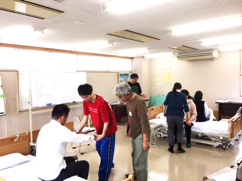 伊与久主任と小林副主任両名による「体に負担をかけないらくらく介護術」として、実際に在宅介護をされている方やこれから必要と思われている方へ、日頃施設で行っている介護技術をお伝えさせていただきました。さまざまな質問が飛び交い、参加者の方々とも交流を深める事が出来た貴重な時間でした。