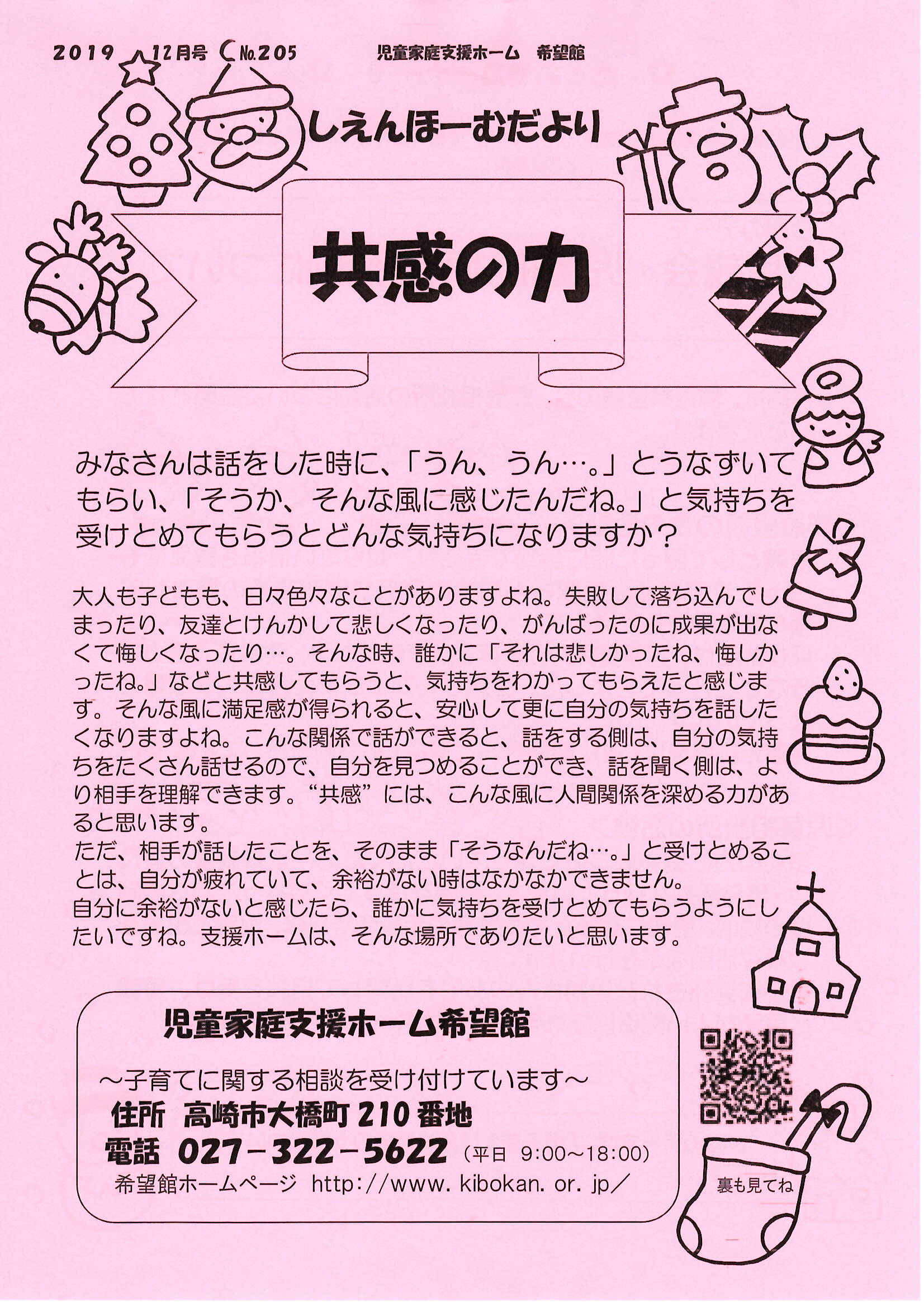 クリスマスが近づいてきた19日には、職員による親子コンサートが開かれ、今年もお母様がピアノ伴奏、娘さんが歌い手でしっとりと澄んだ歌声を聴かせてくれました。