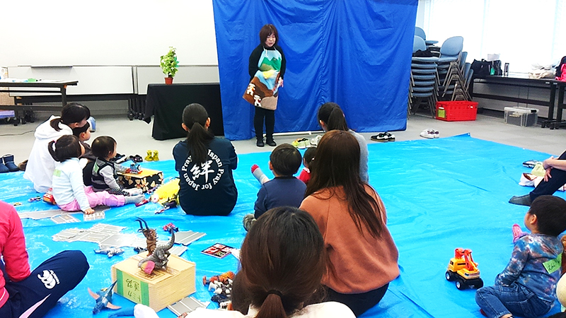 託児部屋には、今回「エプロンステージ」という人形劇団のみなさんが来てくださいました。エプロンシアターと人形劇を披露してくださると、何と泣いていた子も笑顔に♪
