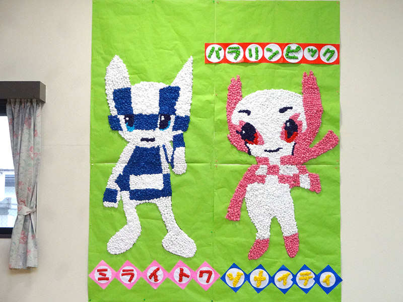 今年開催予定の東京オリンピック・パラリンピックのマスコットキャラクターの壁面画を制作いたしました。