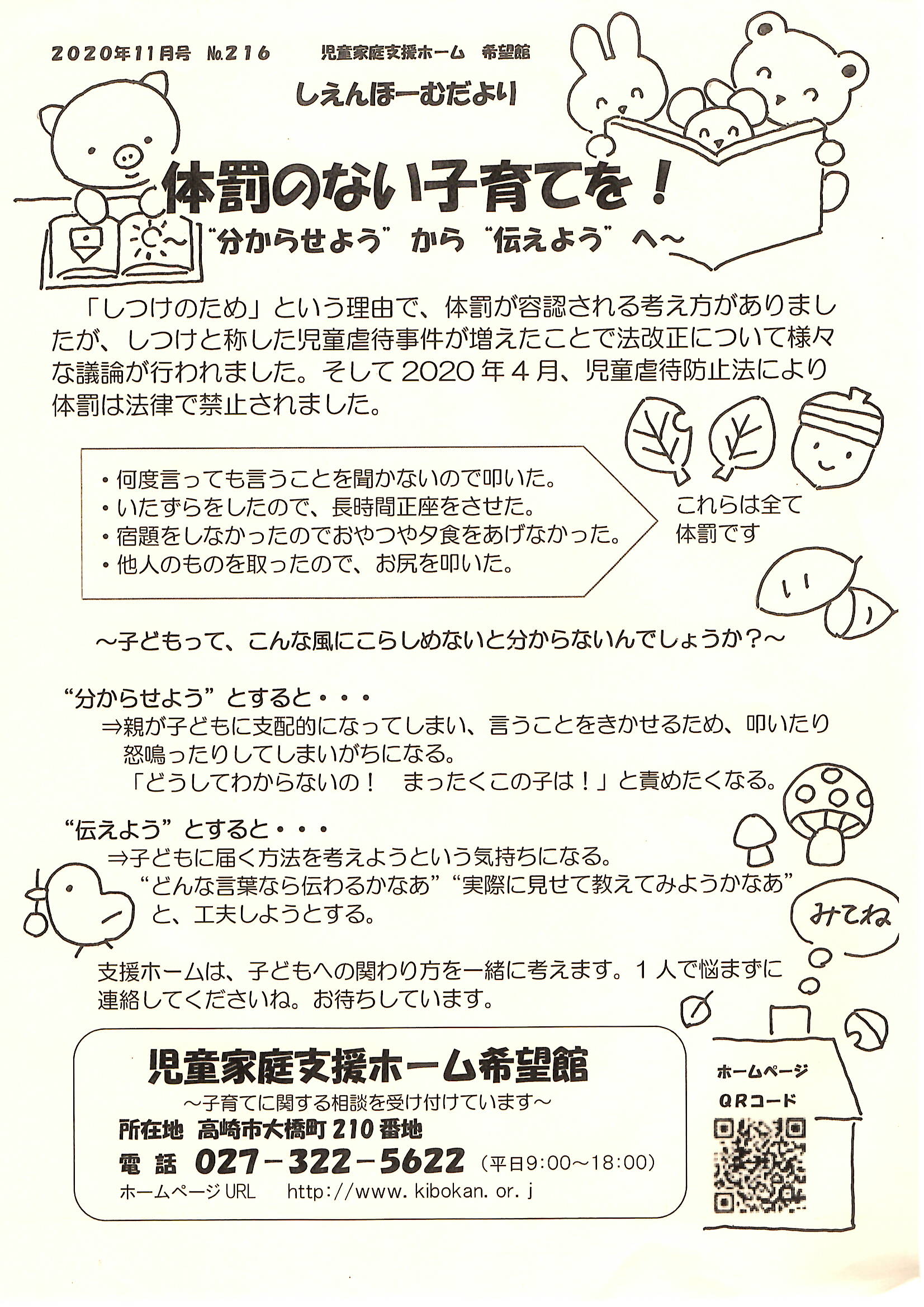 【しえんほーむだより】2020年11月号[No.216]